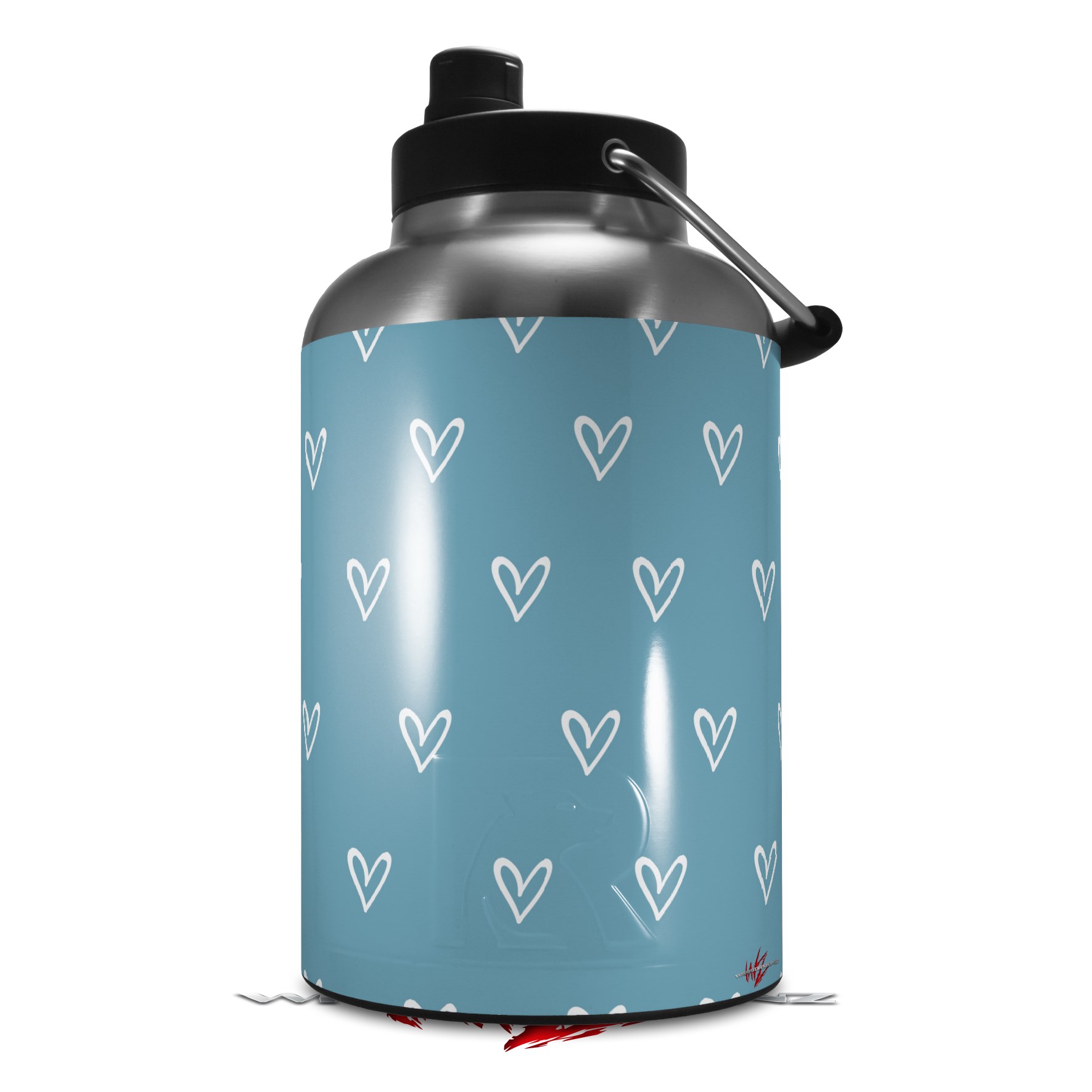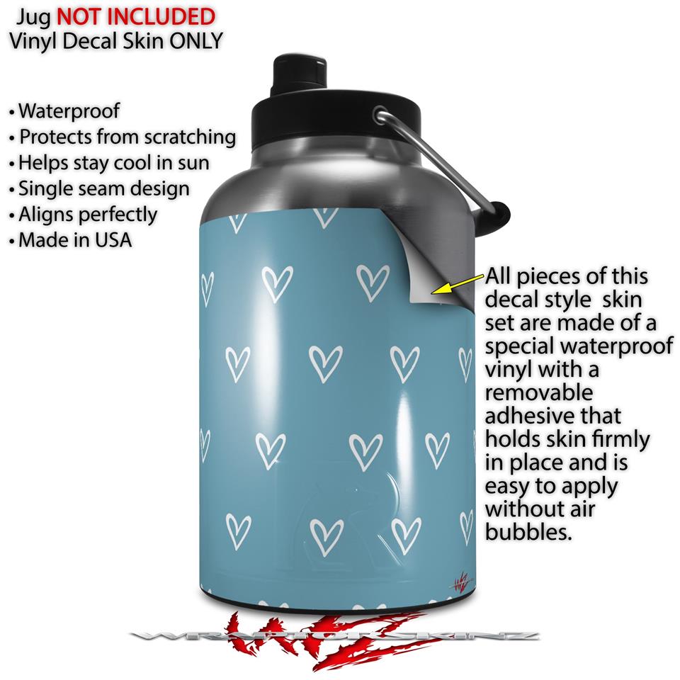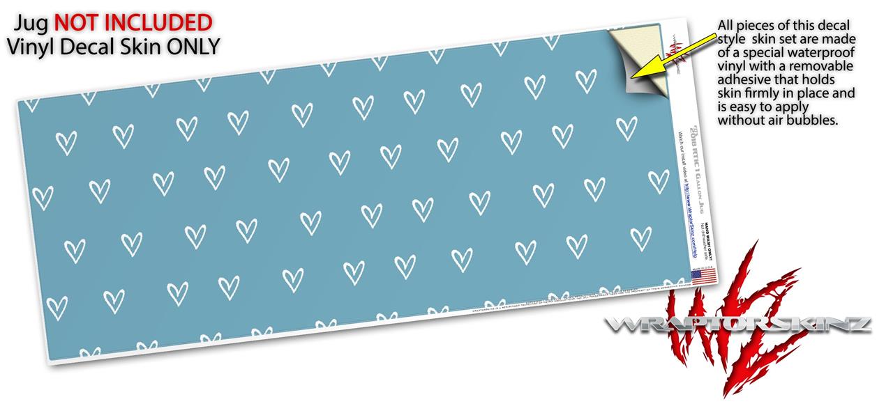 Skin Decal Wrap for 2017 RTIC One Gallon Jug Hearts Blue On White (Jug NOT INCLUDED) by WraptorSkinz