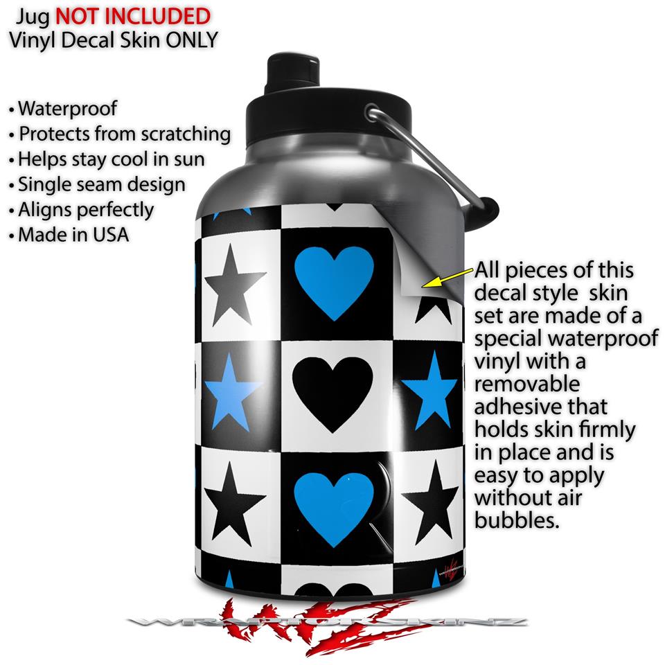 Skin Decal Wrap for 2017 RTIC One Gallon Jug Hearts And Stars Blue (Jug NOT INCLUDED) by WraptorSkinz