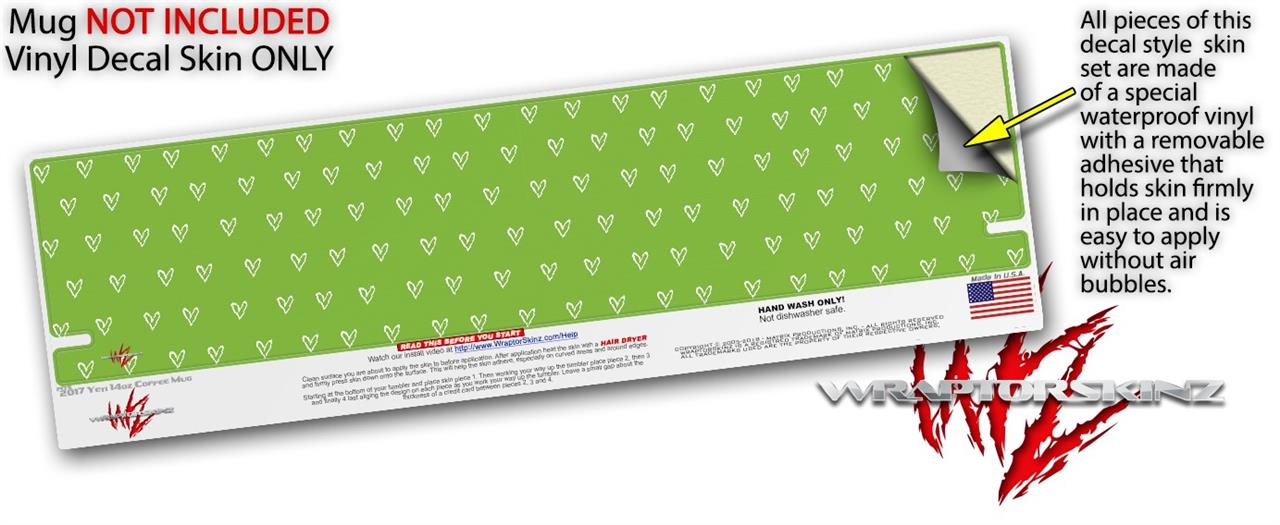 Skin Decal Wrap for Yeti Coffee Mug 14oz Hearts Green On White - 14 oz CUP NOT INCLUDED by WraptorSkinz