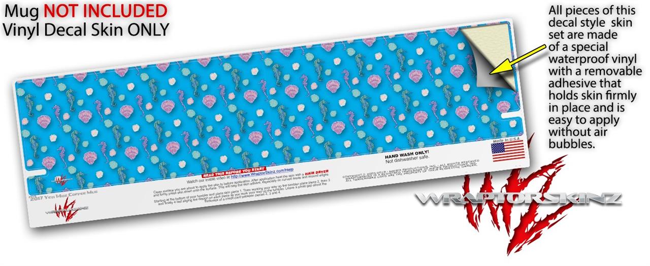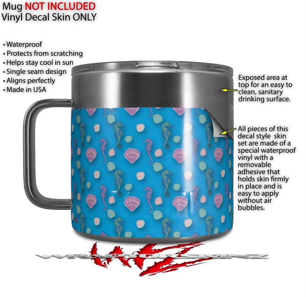 Skin Decal Wrap for Yeti Coffee Mug 14oz Seahorses and Shells Blue Medium - 14 oz CUP NOT INCLUDED by WraptorSkinz