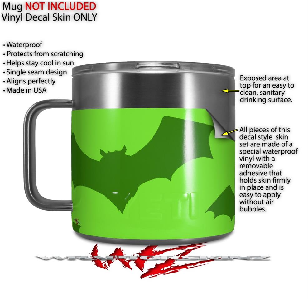 Skin Decal Wrap for Yeti Coffee Mug 14oz Deathrock Bats Green - 14 oz CUP NOT INCLUDED by WraptorSkinz