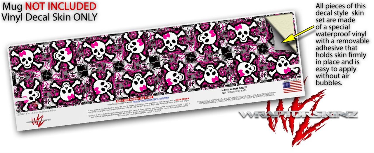 Skin Decal Wrap for Yeti Coffee Mug 14oz Splatter Girly Skull Pink - 14 oz CUP NOT INCLUDED by WraptorSkinz