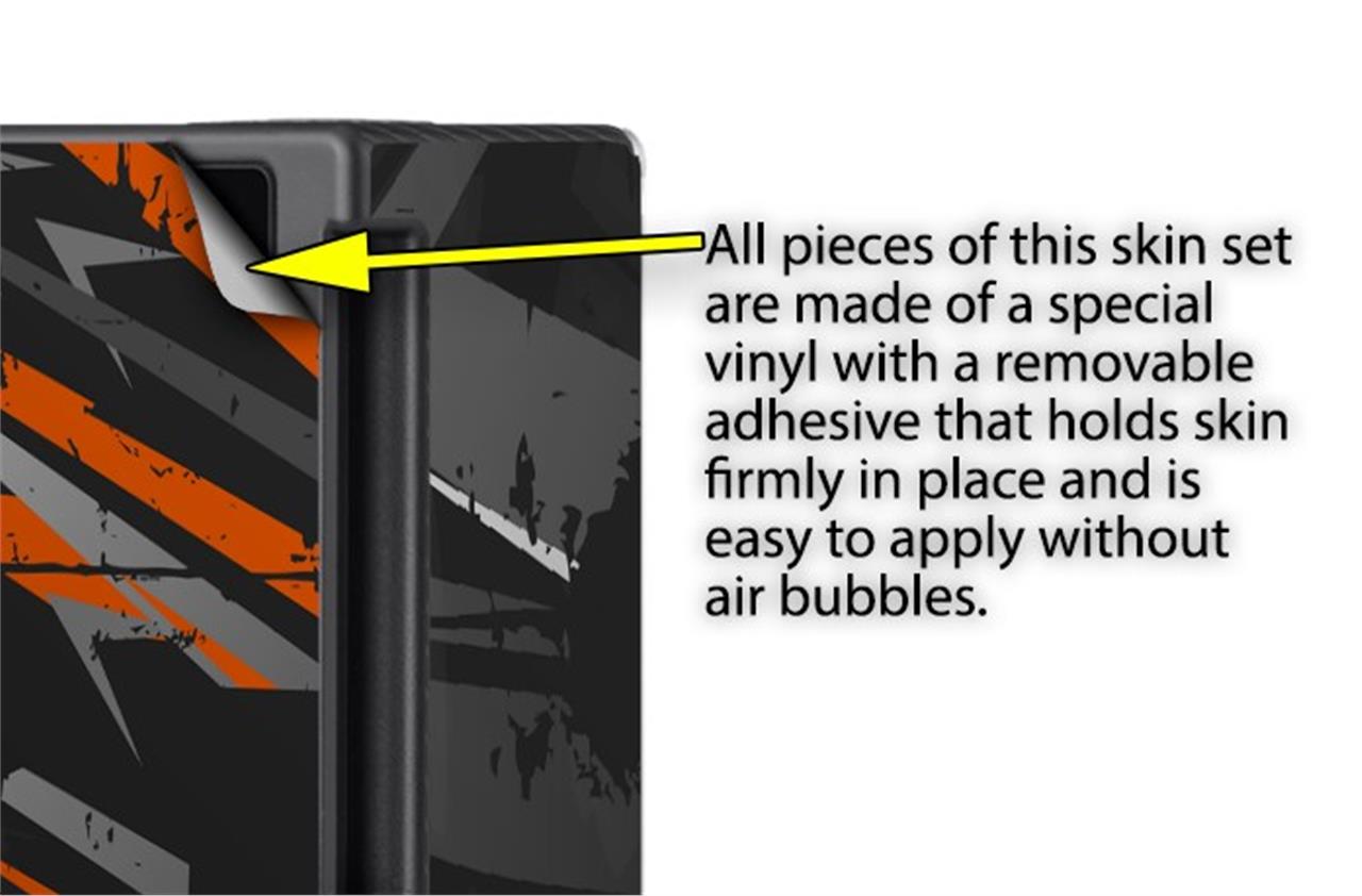 WraptorSkinz® skins are superb photo quality designs and vibrant colors printed with special Eco-Friendly, fade resistant inks. Our skins are self-adhering flexible vinyl skins that helps prevent scratches. Made of composite, multi-layered commercial grade materials. The bottom layer is made with a special removable adhesive that is easily positioned and applied without air bubbles. We print your design on the bottom layer then bond a professional grade laminate over the entire skin adding a glossy protective finish.