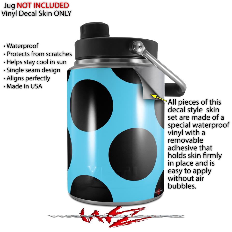 Skin Decal Wrap for Yeti Half Gallon Jug Kearas Polka Dots Black And Blue - JUG NOT INCLUDED by WraptorSkinz