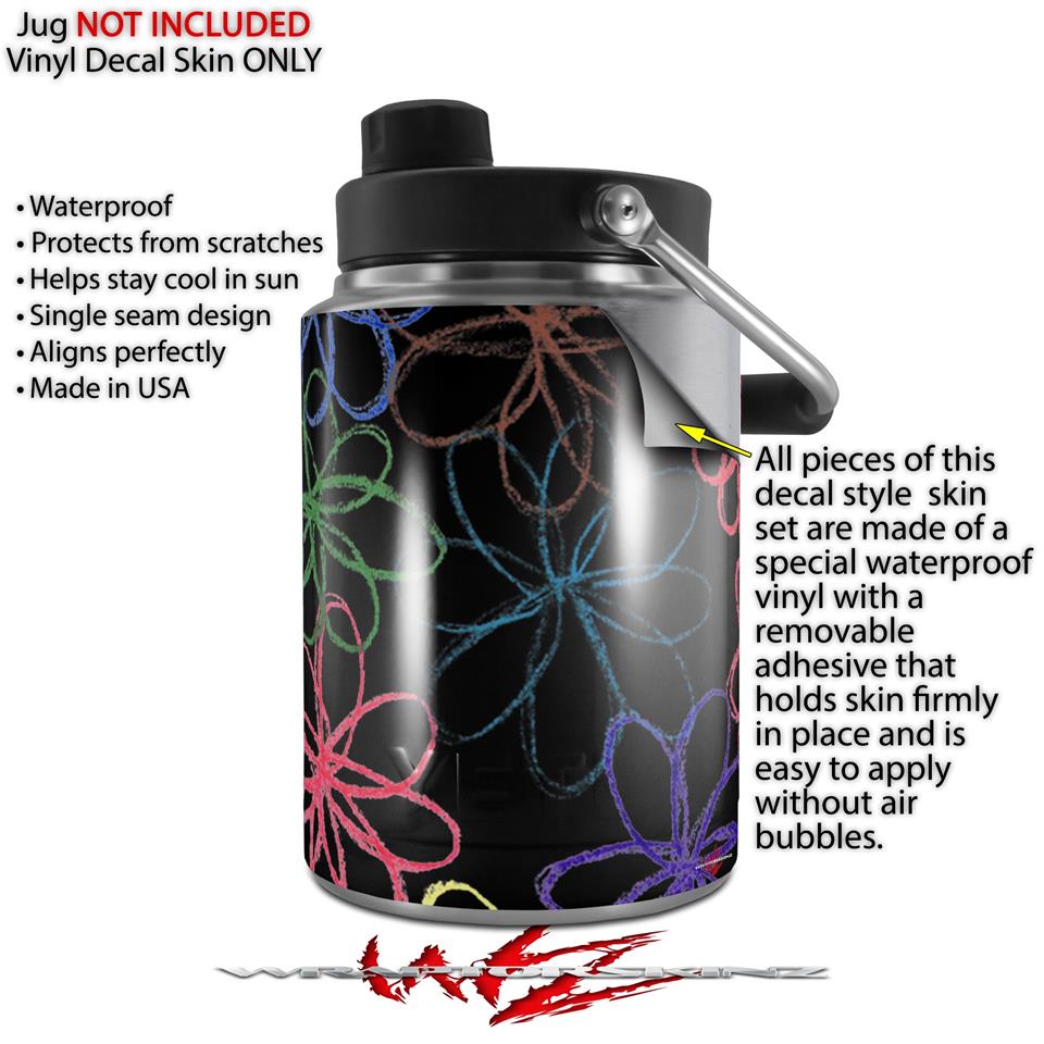 Skin Decal Wrap for Yeti Half Gallon Jug Kearas Flowers on Black - JUG NOT INCLUDED by WraptorSkinz