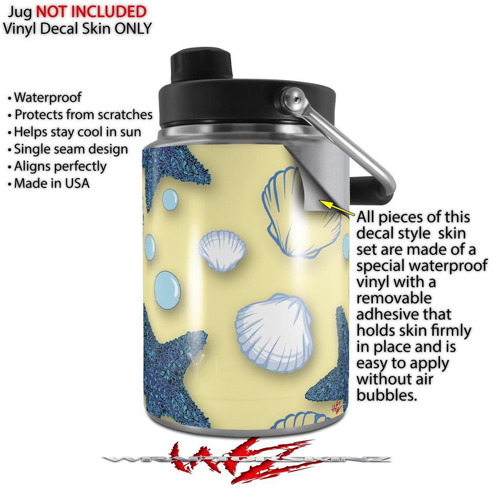 Skin Decal Wrap for Yeti Half Gallon Jug Starfish and Sea Shells Yellow Sunshine - JUG NOT INCLUDED by WraptorSkinz