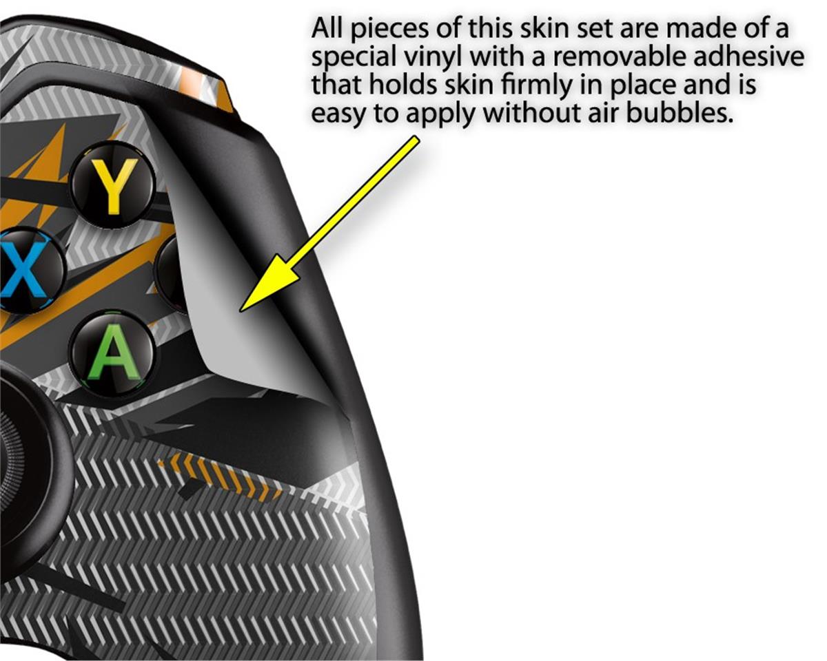 WraptorSkinz® wraps for the XBOX One controller are self-adhering vinyl skins that help prevent scratches and look great. Unlike bulky silicon and plastic covers, WraptorSkinz XBOX 1 skins are designed to be thin and very tough. WraptorSkinz are a composite of two layers of professional grade materials. The bottom layer is a soft, flexible vinyl with a special removable adhesive that is easily positioned and applied without air bubbles. The bottom layer of the XBOX One Controller skin is printed with special UV protected, fade resistant inks that deliver superb photo quality designs in vibrant colors. Finally, we bond a professional grade laminate over the entire XBOX One skin adding a glossy protective finish.