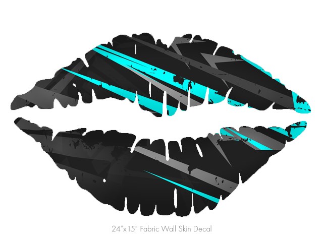 Baja 0014 Neon Teal - Kissing Lips Fabric Wall Skin Decal measures 24x15 inches