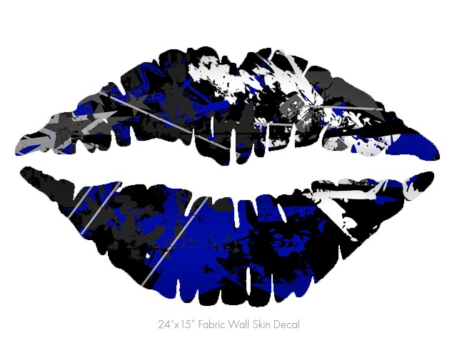 Baja 0003 Royal Blue - Kissing Lips Fabric Wall Skin Decal measures 24x15 inches