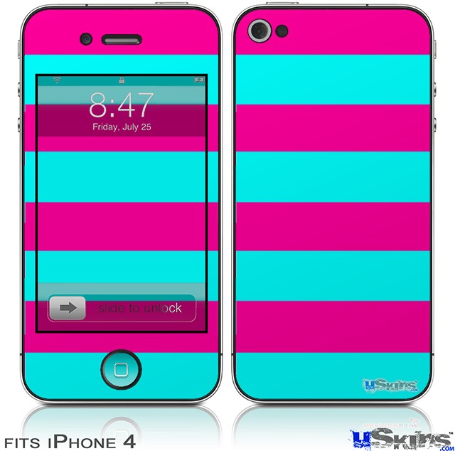 iPhone 4 Decal Style Vinyl Skin - Psycho Stripes Neon Teal and Hot Pink (DOES NOT fit newer iPhone 4S)