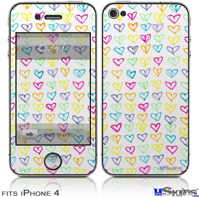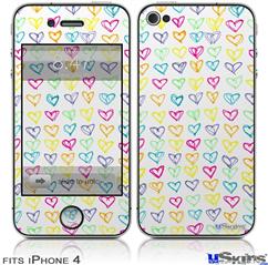 iPhone 4 Decal Style Vinyl Skin - Kearas Hearts White (DOES NOT fit newer iPhone 4S)