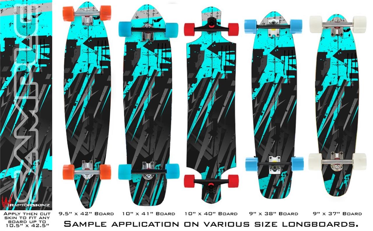 Our longboard skins are made so that one size fits boards up to 10” wide x 42” long. This means after applying the skin it you will trimming to fit you’re the shape of your board with a sharp utility knife.
