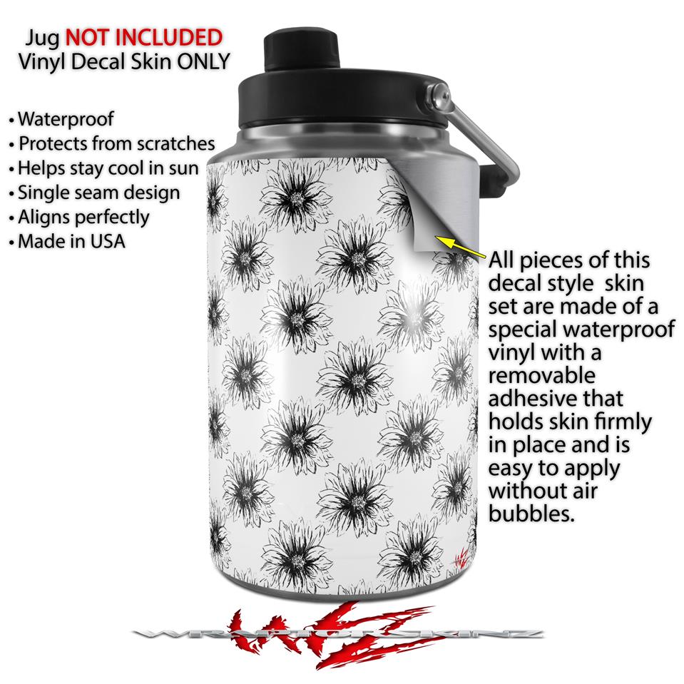 Skin Decal Wrap for Yeti 1 Gallon Jug Kearas Daisies Black on White - JUG NOT INCLUDED by WraptorSkinz