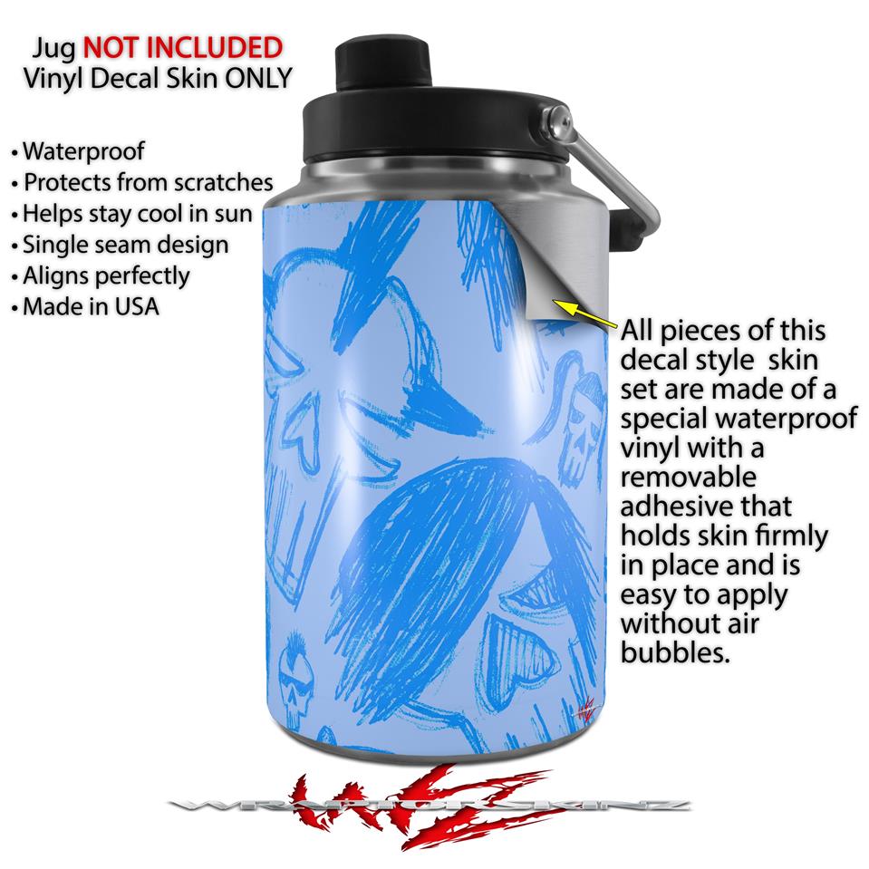Skin Decal Wrap for Yeti 1 Gallon Jug Skull Sketches Blue - JUG NOT INCLUDED by WraptorSkinz