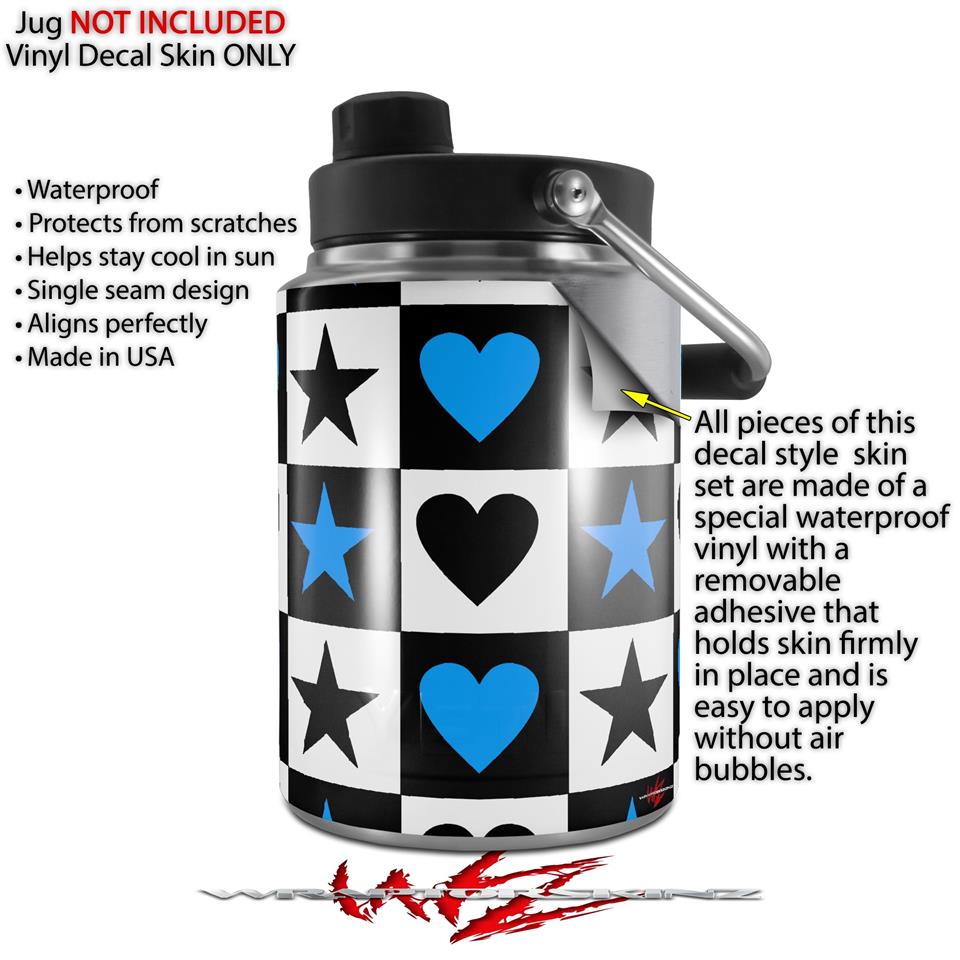 Skin Decal Wrap for Yeti Half Gallon Jug Hearts And Stars Blue - JUG NOT INCLUDED by WraptorSkinz