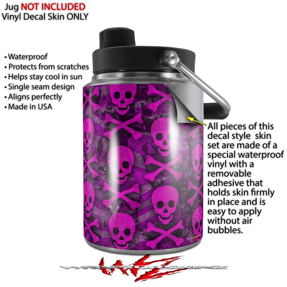 Skin Decal Wrap for Yeti Half Gallon Jug Pink Skull Bones - JUG NOT INCLUDED by WraptorSkinz