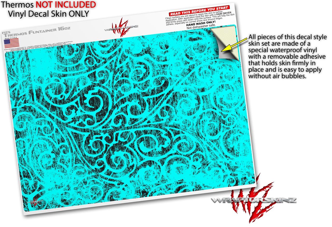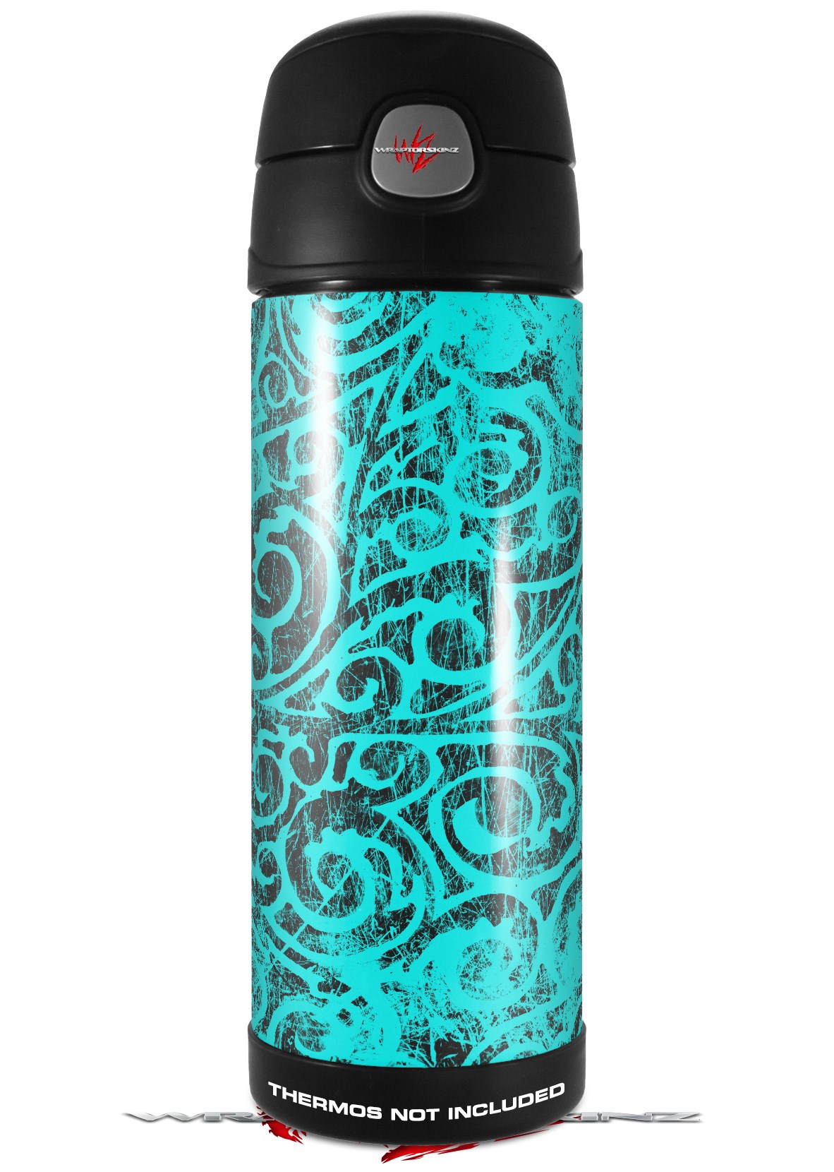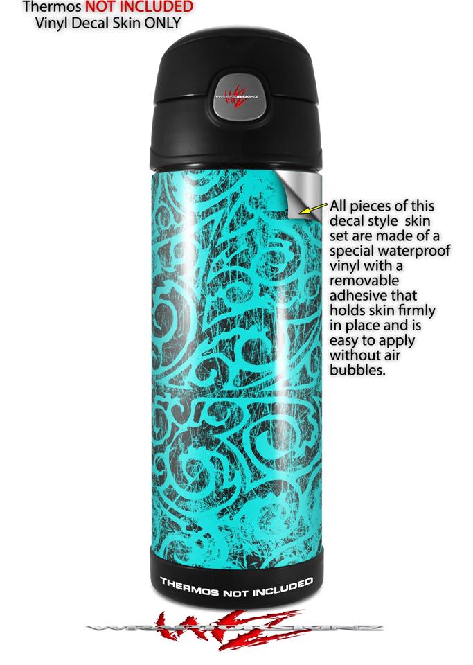 Skin Decal Wrap for Thermos Funtainer 16oz Bottle Folder Doodles Neon Teal (BOTTLE NOT INCLUDED) by WraptorSkinz