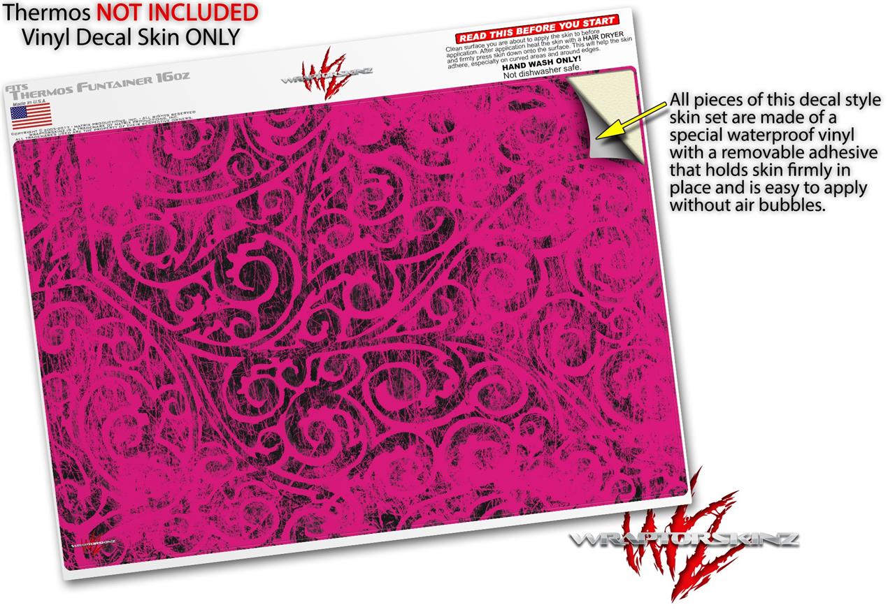 Skin Decal Wrap for Thermos Funtainer 16oz Bottle Folder Doodles Fuchsia (BOTTLE NOT INCLUDED) by WraptorSkinz