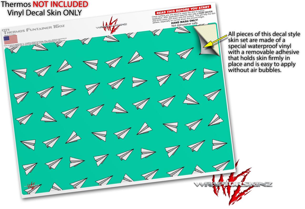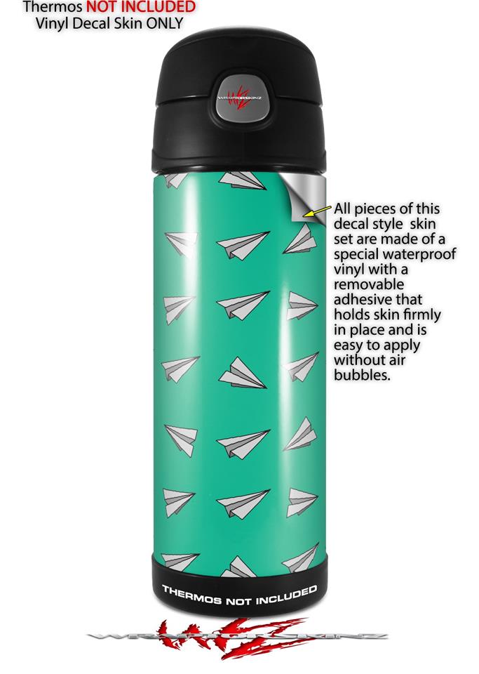 Skin Decal Wrap for Thermos Funtainer 16oz Bottle Paper Planes Turquoise (BOTTLE NOT INCLUDED) by WraptorSkinz
