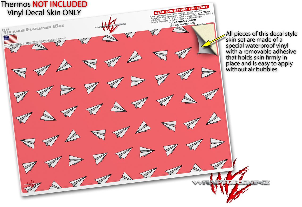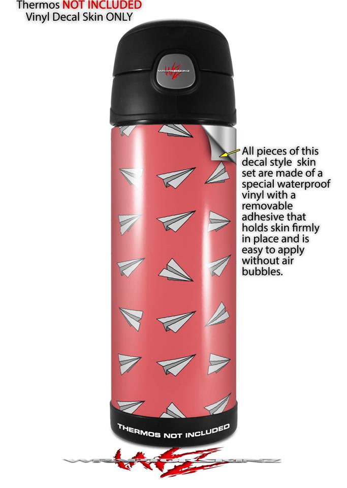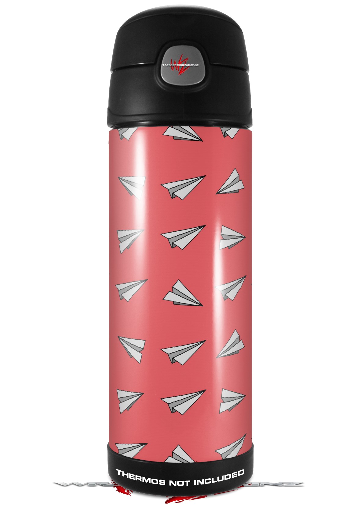 Skin Decal Wrap for Thermos Funtainer 16oz Bottle Paper Planes Coral (BOTTLE NOT INCLUDED) by WraptorSkinz