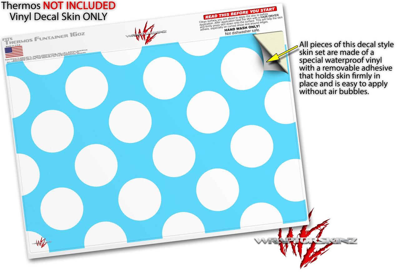 Skin Decal Wrap for Thermos Funtainer 16oz Bottle Kearas Polka Dots White And Blue (BOTTLE NOT INCLUDED) by WraptorSkinz