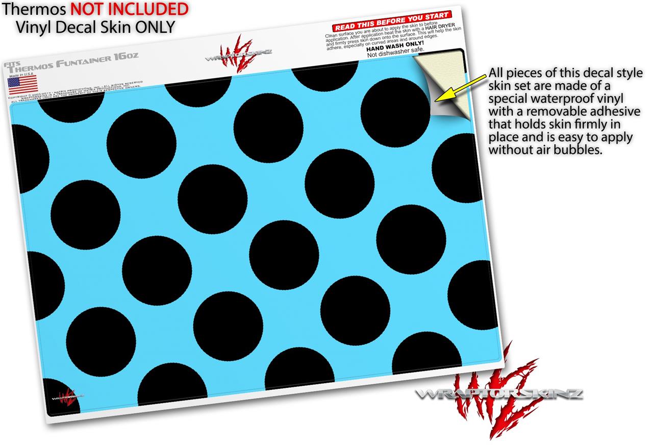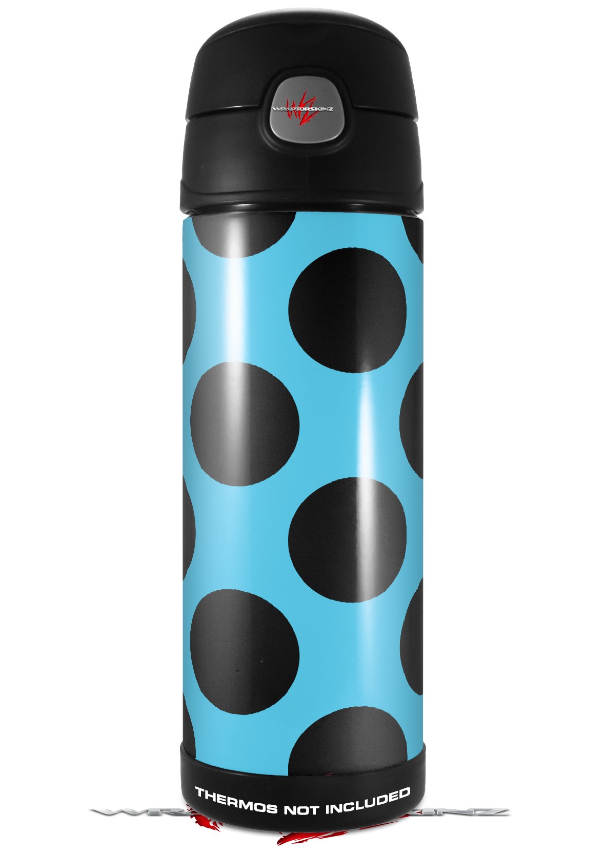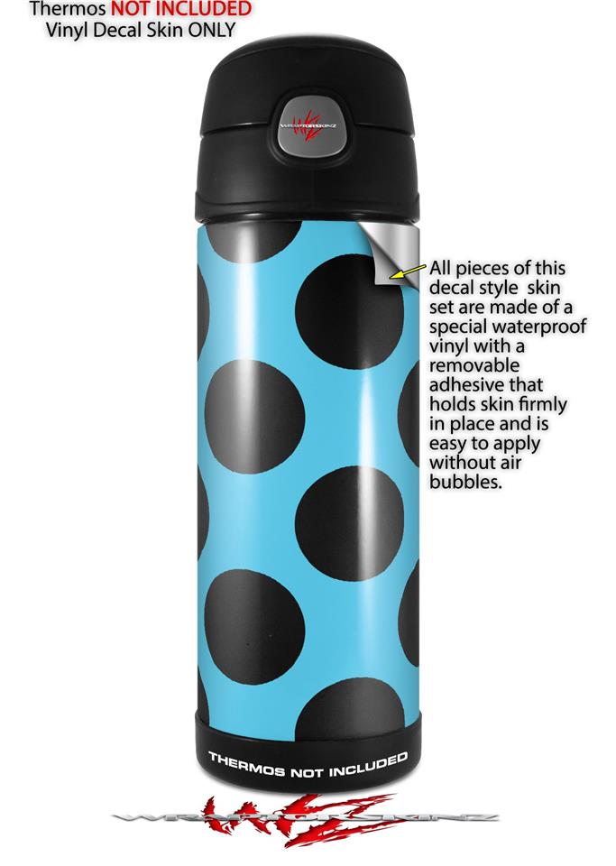 Skin Decal Wrap for Thermos Funtainer 16oz Bottle Kearas Polka Dots Black And Blue (BOTTLE NOT INCLUDED) by WraptorSkinz