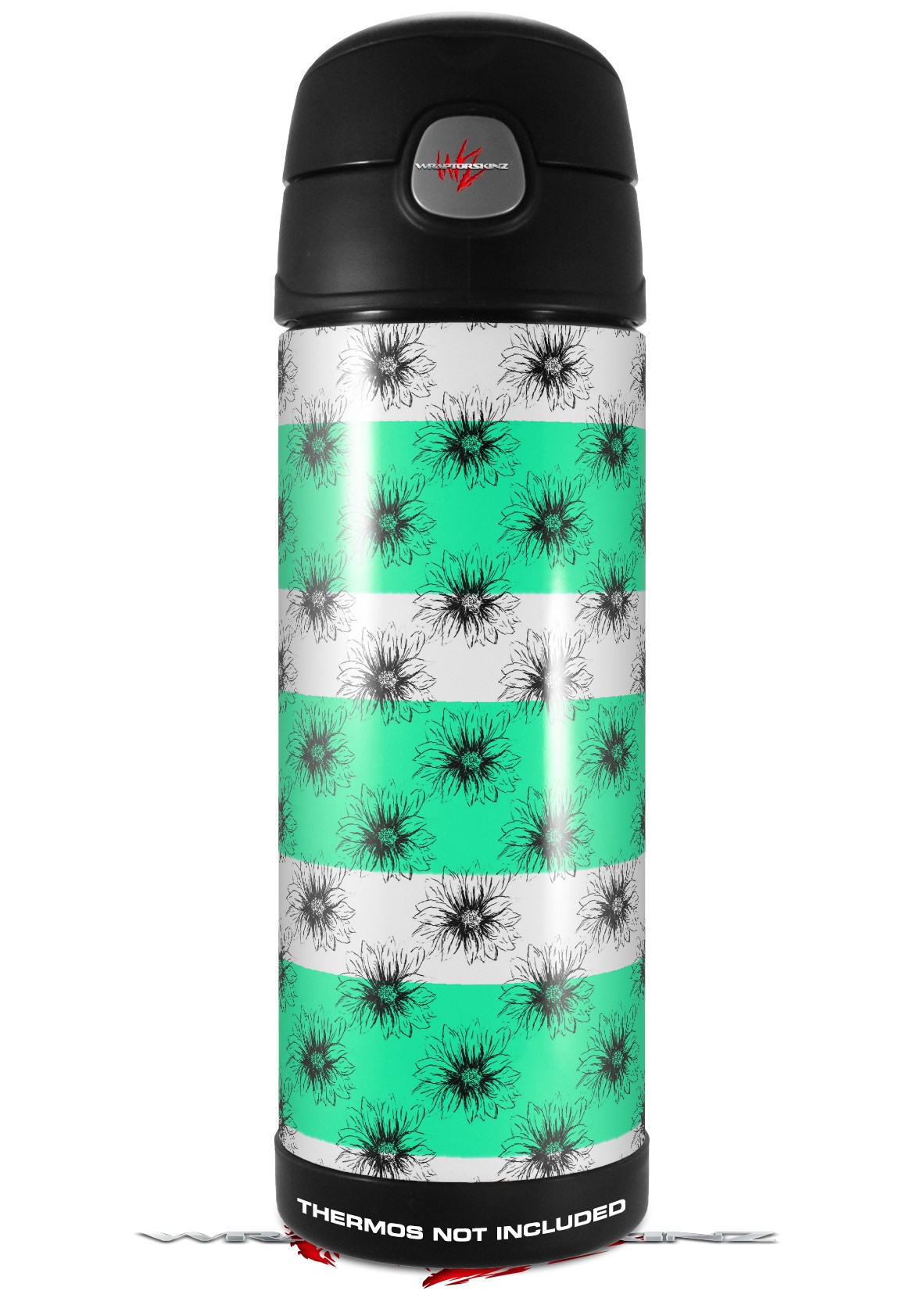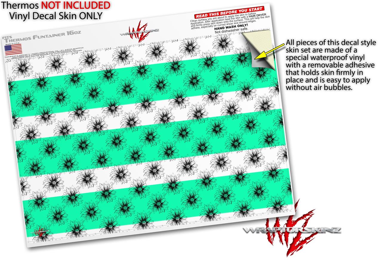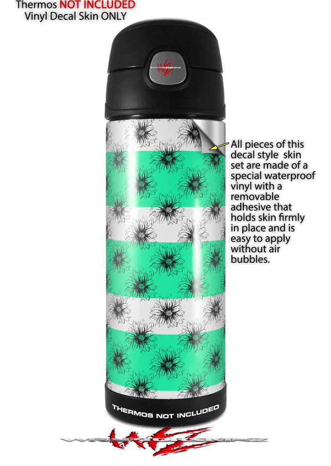 Skin Decal Wrap for Thermos Funtainer 16oz Bottle Kearas Daisies Stripe SeaFoam (BOTTLE NOT INCLUDED) by WraptorSkinz