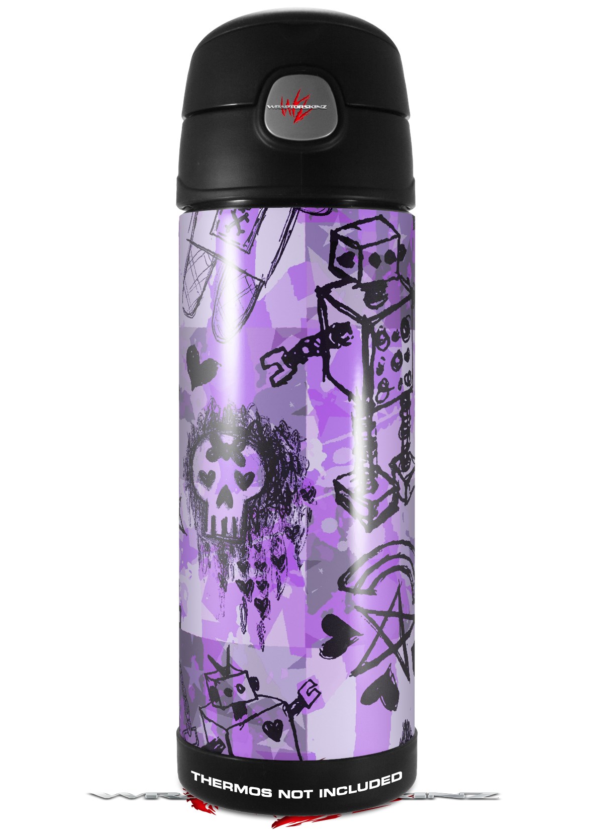 Skin Decal Wrap for Thermos Funtainer 16oz Bottle Scene Kid Sketches Purple (BOTTLE NOT INCLUDED) by WraptorSkinz