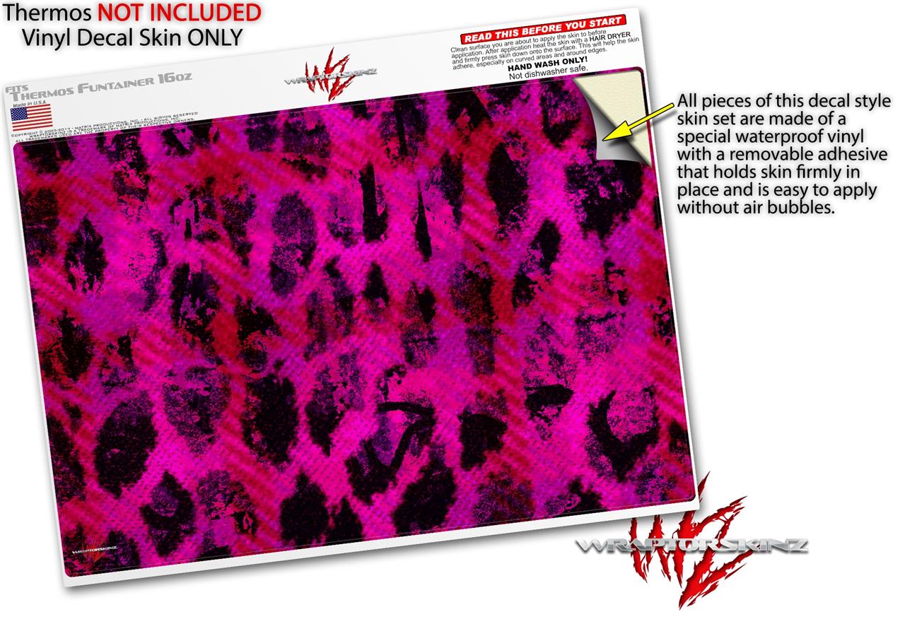 Skin Decal Wrap for Thermos Funtainer 16oz Bottle Pink Distressed Leopard (BOTTLE NOT INCLUDED) by WraptorSkinz