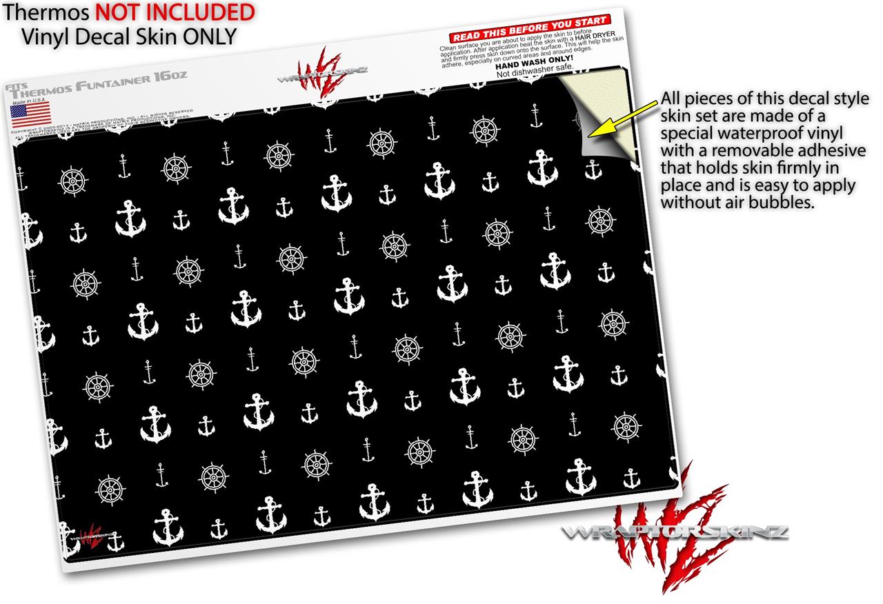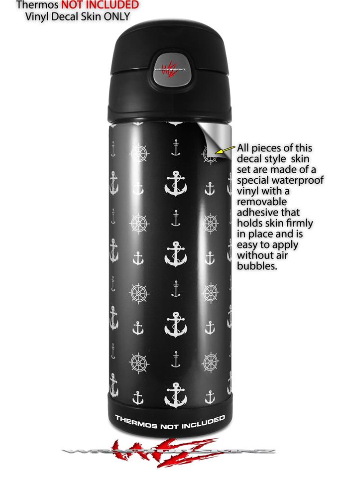 Skin Decal Wrap for Thermos Funtainer 16oz Bottle Nautical Anchors Away 02 Black (BOTTLE NOT INCLUDED) by WraptorSkinz
