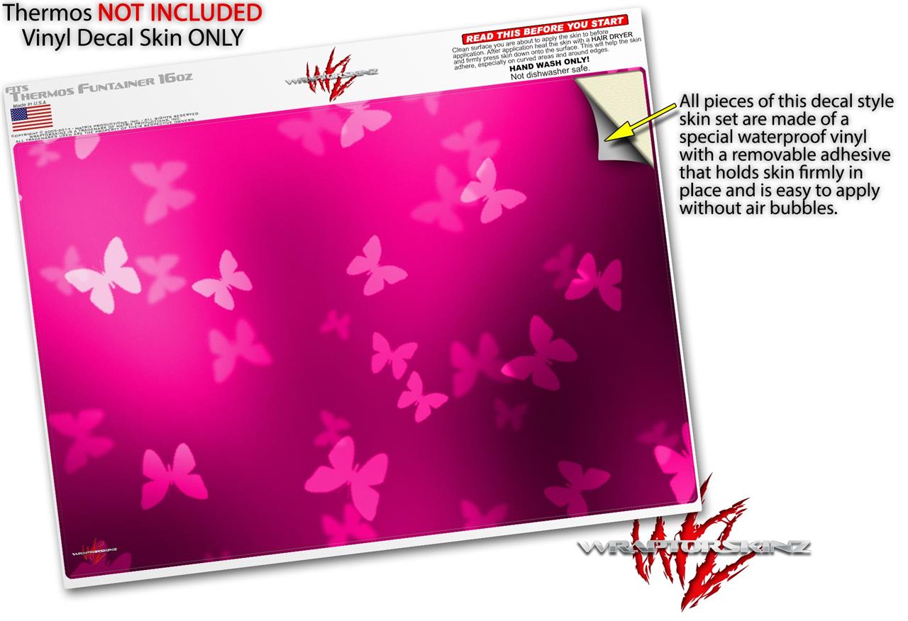 Skin Decal Wrap for Thermos Funtainer 16oz Bottle Bokeh Butterflies Hot Pink (BOTTLE NOT INCLUDED) by WraptorSkinz