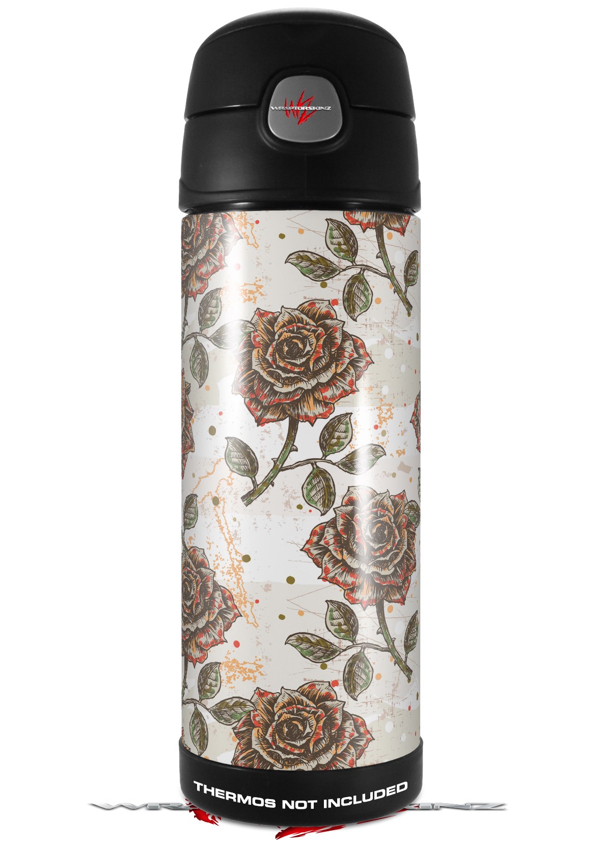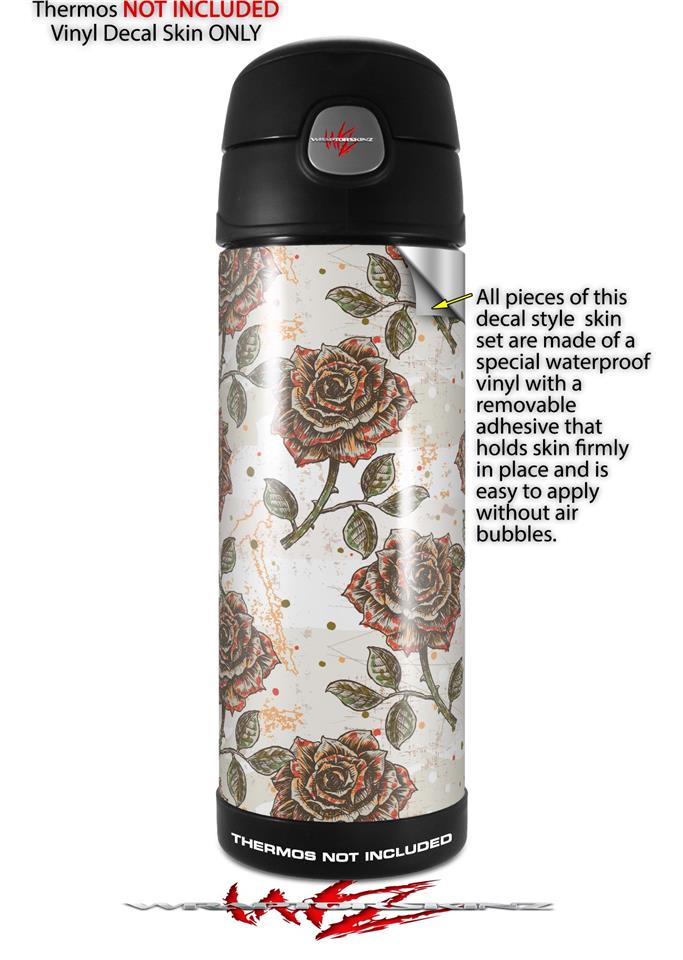 Skin Decal Wrap for Thermos Funtainer 16oz Bottle Flowers Pattern Roses 20 (BOTTLE NOT INCLUDED) by WraptorSkinz