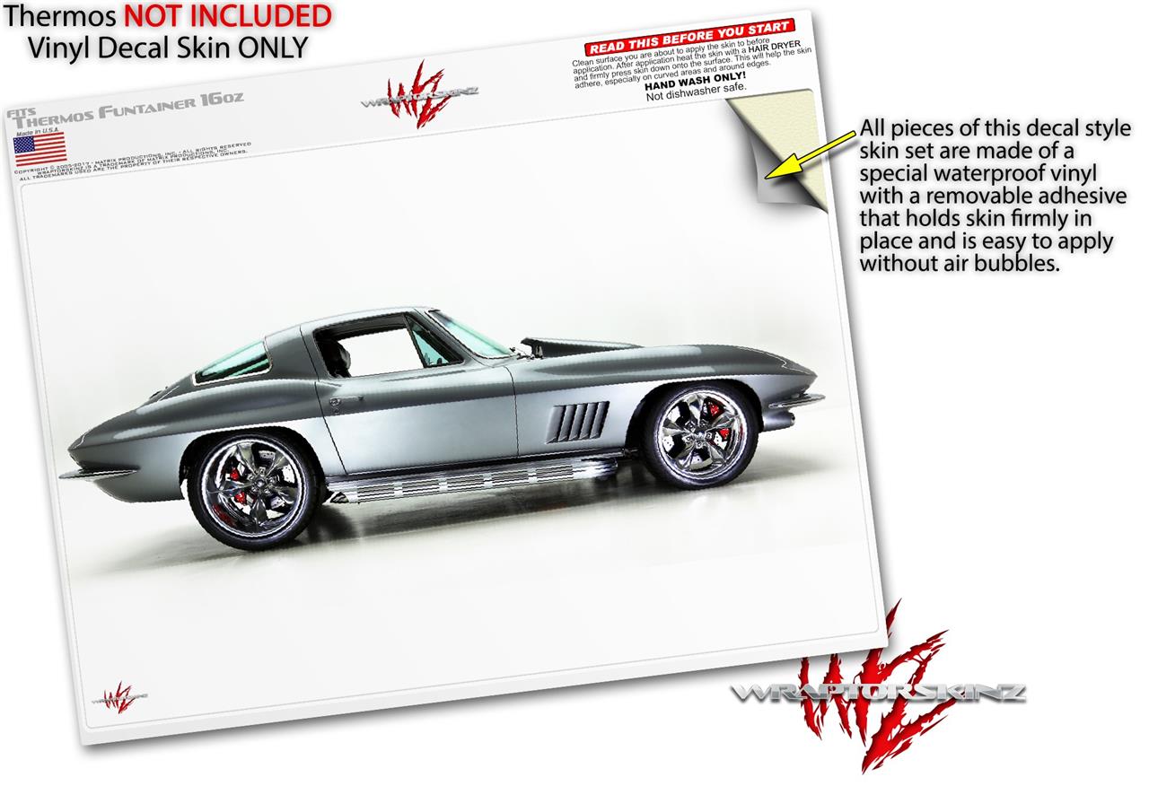 Skin Decal Wrap for Thermos Funtainer 16oz Bottle 1967 Corvette Silver Bullet (BOTTLE NOT INCLUDED) by WraptorSkinz