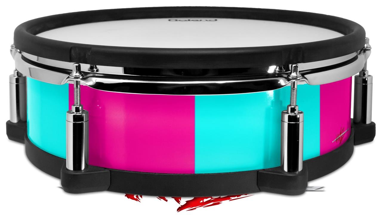 Skin Wrap works with Roland vDrum Shell PD-128 Drum Psycho Stripes Neon Teal and Hot Pink (DRUM NOT INCLUDED)