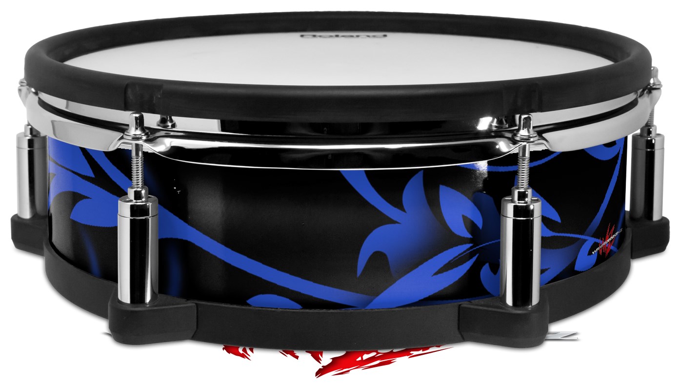 Skin Wrap works with Roland vDrum Shell PD-128 Drum Twisted Garden Blue and White (DRUM NOT INCLUDED)