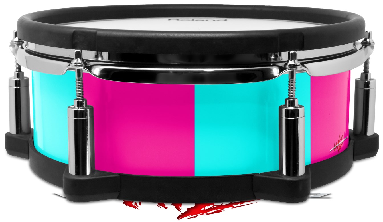 Skin Wrap works with Roland vDrum Shell PD-108 Drum Psycho Stripes Neon Teal and Hot Pink (DRUM NOT INCLUDED)
