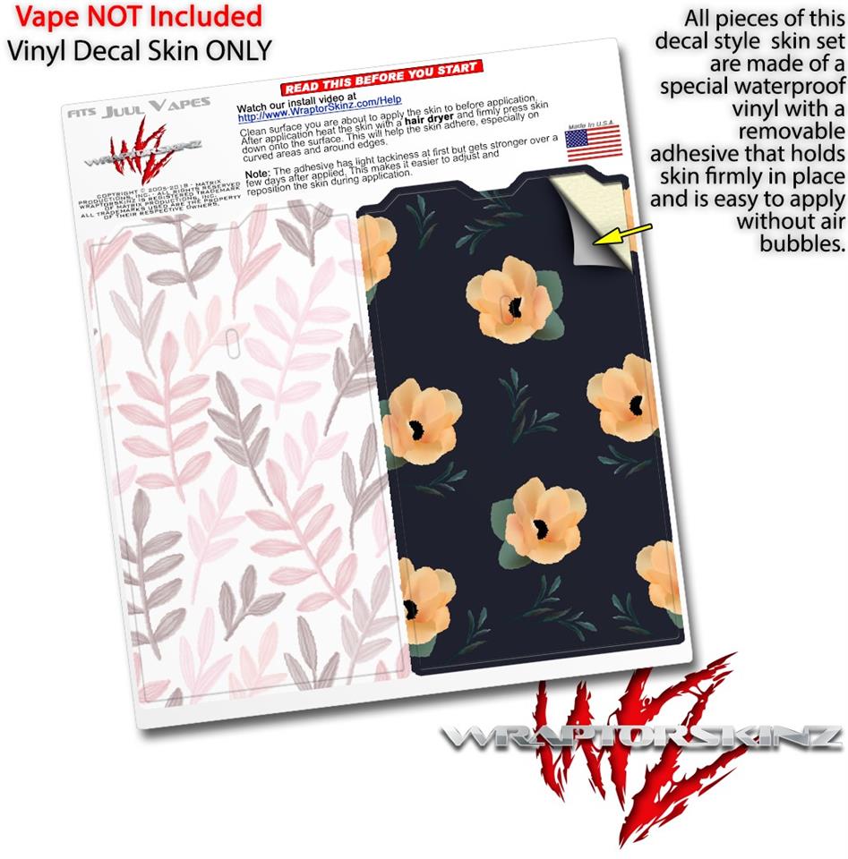 WraptorSkinz® skin wraps are printed using superb photo quality designs and vibrant colors printed with special fade resistant inks that last even in direct sun for years. WraptorSkinz are a composite of two layers of commercial grade materials. The bottom layer is a soft, flexible vinyl with a special removable adhesive that is easily positioned, applied without air bubbles. Next we print the bottom layer with UV protected, fade resistant inks that deliver superb photo quality designs in vibrant colors. Finally we bond a professional grade laminate over the entire skin adding a glossy protective finish. This product is not affiliated with or endorsed by the Juul brand.