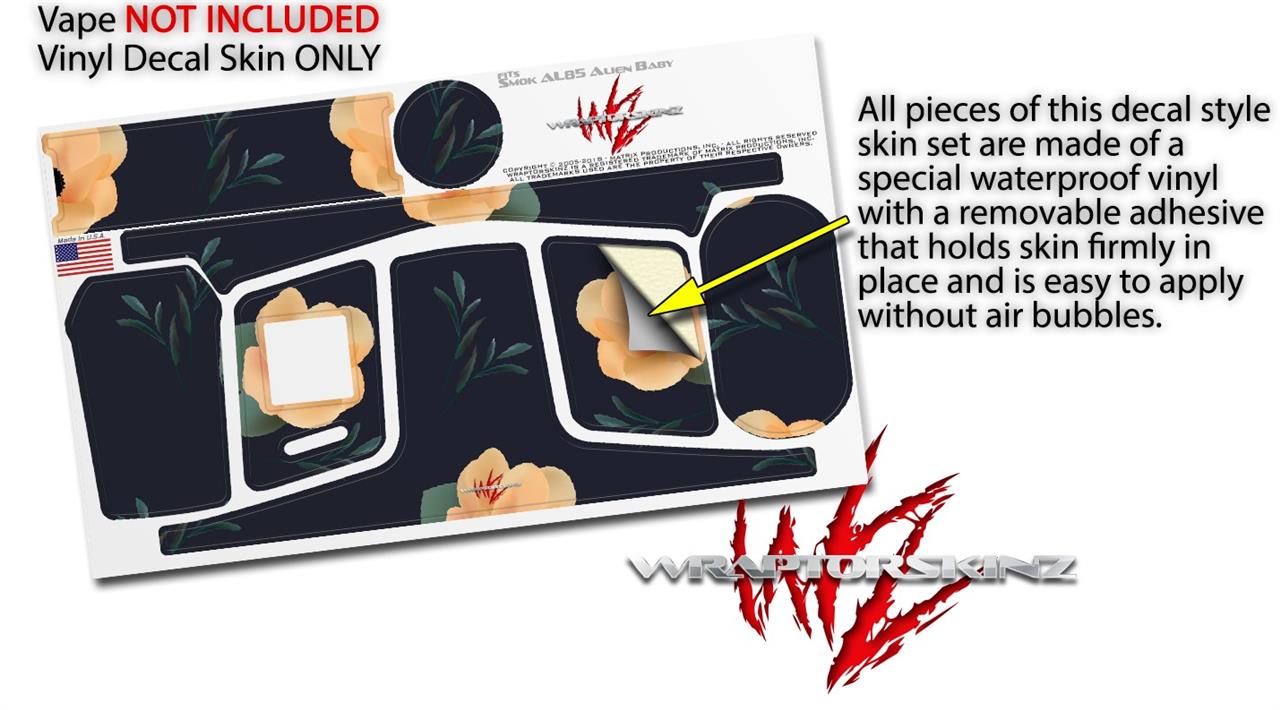 WraptorSkinz® skin wraps are printed using superb photo quality designs and vibrant colors printed with special fade resistant inks that last even in direct sun for years. WraptorSkinz are a composite of two layers of commercial grade materials. The bottom layer is a soft, flexible vinyl with a special removable adhesive that is easily positioned, applied without air bubbles. Next we print the bottom layer with UV protected, fade resistant inks that deliver superb photo quality designs in vibrant colors. Finally we bond a professional grade laminate over the entire skin adding a glossy protective finish. This product is not affiliated with or endorsed by the Smok brand.