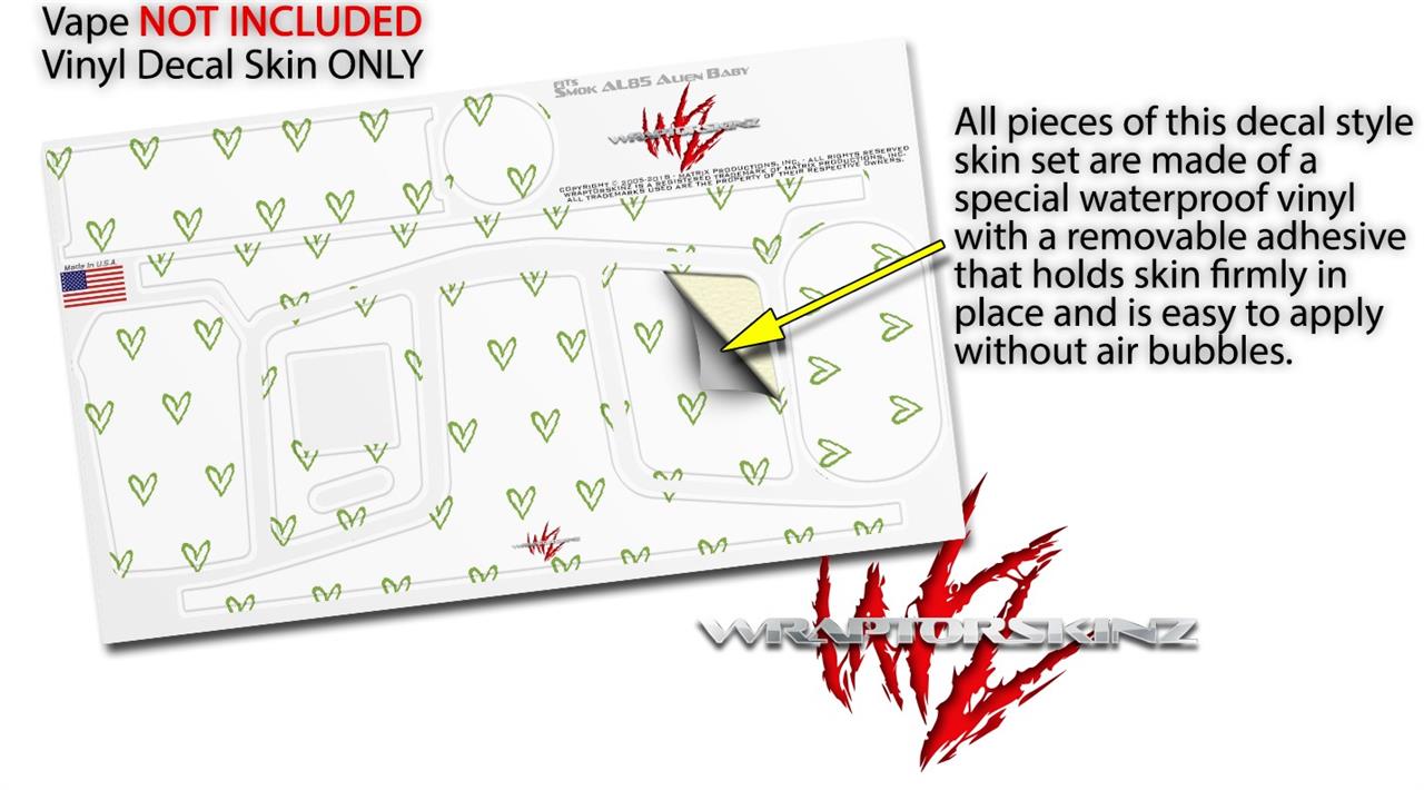 Skin Decal Wrap for Smok AL85 Alien Baby Hearts Green VAPE NOT INCLUDED