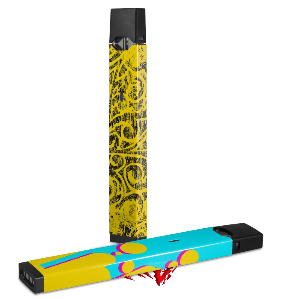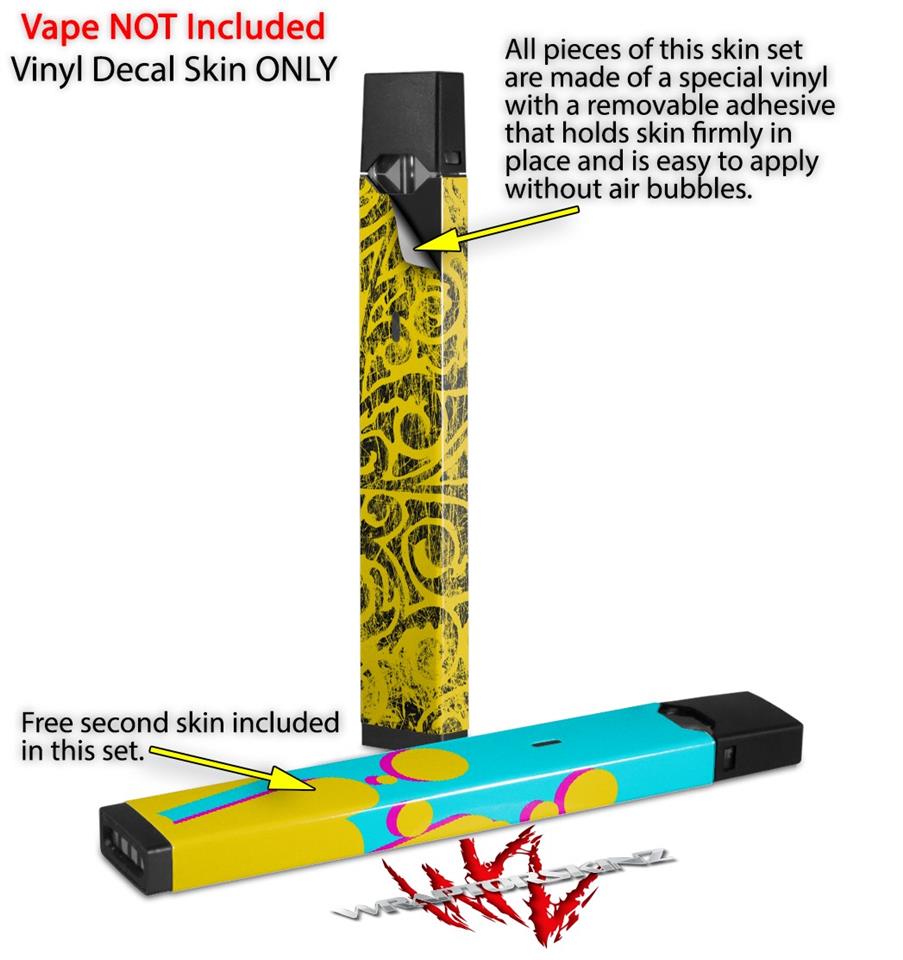 Skin Decal Wrap 2 Pack for Juul Vapes Folder Doodles Yellow JUUL NOT INCLUDED