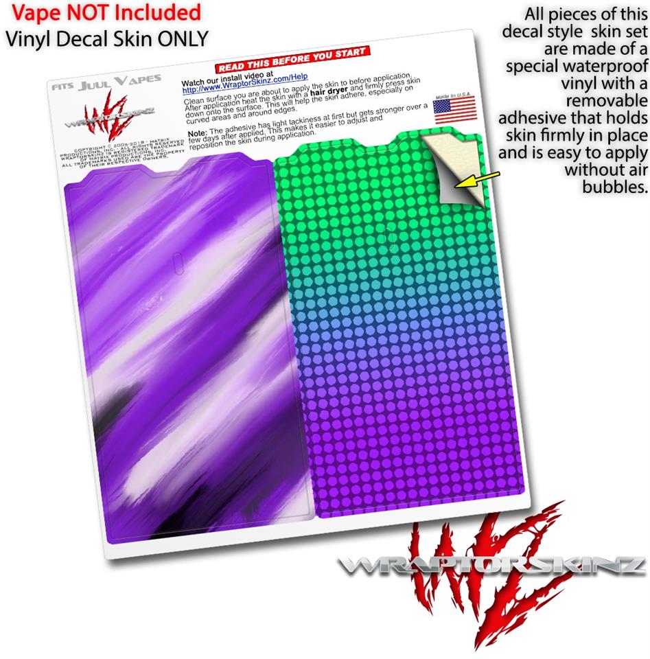 WraptorSkinz® skin wraps are printed using superb photo quality designs and vibrant colors printed with special fade resistant inks that last even in direct sun for years. WraptorSkinz are a composite of two layers of commercial grade materials. The bottom layer is a soft, flexible vinyl with a special removable adhesive that is easily positioned, applied without air bubbles. Next we print the bottom layer with UV protected, fade resistant inks that deliver superb photo quality designs in vibrant colors. Finally we bond a professional grade laminate over the entire skin adding a glossy protective finish. This product is not affiliated with or endorsed by the Juul brand.