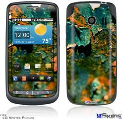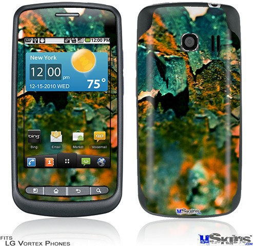 • Skin covers front and back of LG Vortex cell phone.