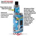 WraptorSkinz® skin wraps are printed using superb photo quality designs and vibrant colors printed with special fade resistant inks that last even in direct sun for years. WraptorSkinz are a composite of two layers of commercial grade materials. The bottom layer is a soft, flexible vinyl with a special removable adhesive that is easily positioned, applied without air bubbles. Next we print the bottom layer with UV protected, fade resistant inks that deliver superb photo quality designs in vibrant colors. Finally we bond a professional grade laminate over the entire skin adding a glossy protective finish. This product is not affiliated with or endorsed by the Smok brand.