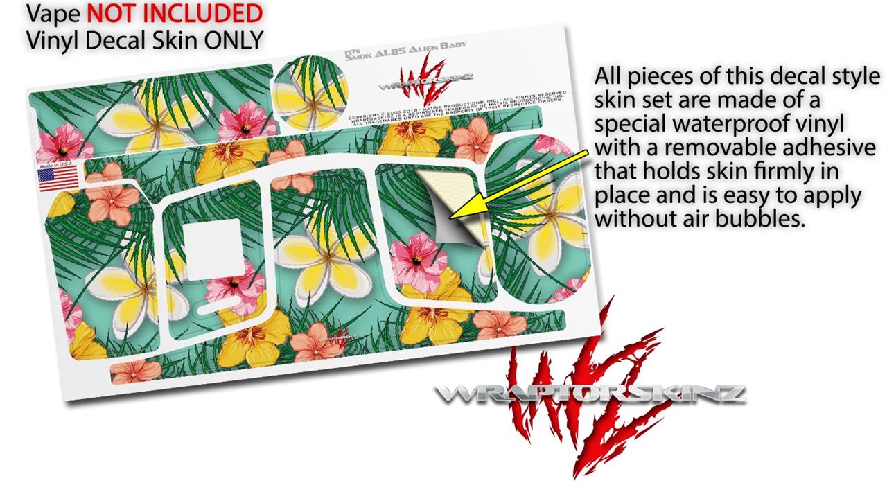 Skin Decal Wrap for Smok AL85 Alien Baby Beach Flowers 02 Seafoam Green VAPE NOT INCLUDED