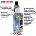 WraptorSkinz® skin wraps are printed using superb photo quality designs and vibrant colors printed with special fade resistant inks that last even in direct sun for years. WraptorSkinz are a composite of two layers of commercial grade materials. The bottom layer is a soft, flexible vinyl with a special removable adhesive that is easily positioned, applied without air bubbles. Next we print the bottom layer with UV protected, fade resistant inks that deliver superb photo quality designs in vibrant colors. Finally we bond a professional grade laminate over the entire skin adding a glossy protective finish. This product is not affiliated with or endorsed by the Smok brand.