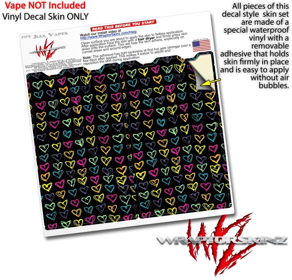 Skin Decal Wrap 2 Pack for Juul Vapes Kearas Hearts Black JUUL NOT INCLUDED