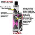 WraptorSkinz® skin wraps are printed using superb photo quality designs and vibrant colors printed with special fade resistant inks that last even in direct sun for years. WraptorSkinz are a composite of two layers of commercial grade materials. The bottom layer is a soft, flexible vinyl with a special removable adhesive that is easily positioned, applied without air bubbles. Next we print the bottom layer with UV protected, fade resistant inks that deliver superb photo quality designs in vibrant colors. Finally we bond a professional grade laminate over the entire skin adding a glossy protective finish. This product is not affiliated with or endorsed by the Smok brand.