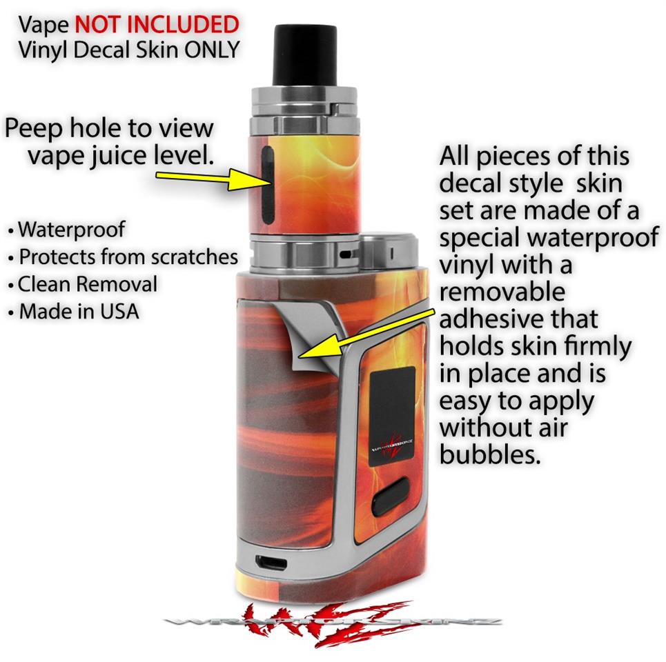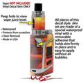 WraptorSkinz® skin wraps are printed using superb photo quality designs and vibrant colors printed with special fade resistant inks that last even in direct sun for years. WraptorSkinz are a composite of two layers of commercial grade materials. The bottom layer is a soft, flexible vinyl with a special removable adhesive that is easily positioned, applied without air bubbles. Next we print the bottom layer with UV protected, fade resistant inks that deliver superb photo quality designs in vibrant colors. Finally we bond a professional grade laminate over the entire skin adding a glossy protective finish. This product is not affiliated with or endorsed by the Smok brand.