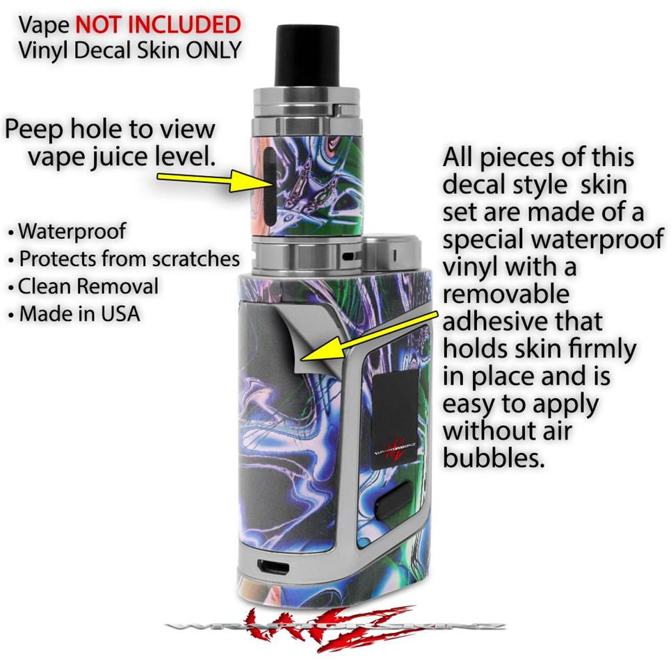 WraptorSkinz® skin wraps are printed using superb photo quality designs and vibrant colors printed with special fade resistant inks that last even in direct sun for years. WraptorSkinz are a composite of two layers of commercial grade materials. The bottom layer is a soft, flexible vinyl with a special removable adhesive that is easily positioned, applied without air bubbles. Next we print the bottom layer with UV protected, fade resistant inks that deliver superb photo quality designs in vibrant colors. Finally we bond a professional grade laminate over the entire skin adding a glossy protective finish. This product is not affiliated with or endorsed by the Smok brand.