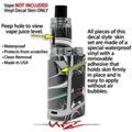 WraptorSkinz® skin wraps are printed using superb photo quality designs and vibrant colors printed with special fade resistant inks that last even in direct sun for years. WraptorSkinz are a composite of two layers of commercial grade materials. The bottom layer is a soft, flexible vinyl with a special removable adhesive that is easily positioned, applied without air bubbles. Next we print the bottom layer with UV protected, fade resistant inks that deliver superb photo quality designs in vibrant colors. Finally we bond a professional grade laminate over the entire skin adding a glossy protective finish. This product is not affiliated with or endorsed by the Smok brand.